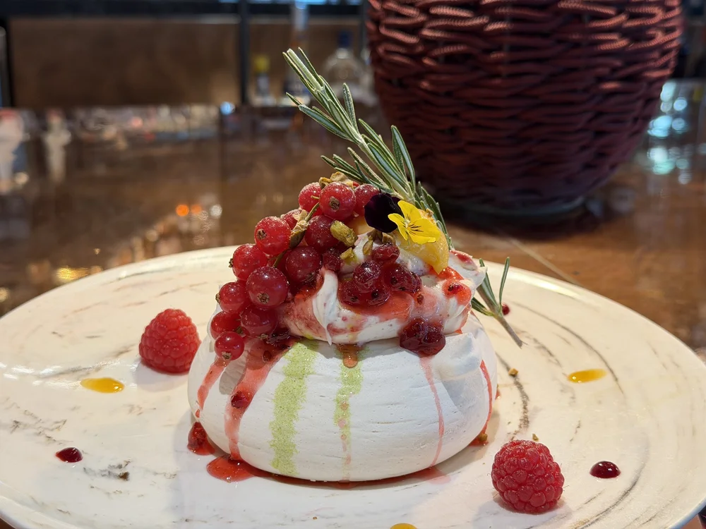 Our limited-edition pavlova is a celebration of that journey and of Singapore itself. A crisp meringue shell with a marshmallowy centre is layered with silky lemon curd, raspberry ripple mascarpone cream, fresh raspberries, and finished with delicate edible florals and a dusting of gold leaf powder. It’s bold, bright, beautiful and unmistakably celebratory.