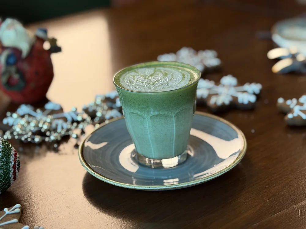 For matcha lovers, we have crafted a holiday drink that feels both indulgent and uplifting. The Matcha Eggnog Latte pairs our housemade eggnog with ceremonial grade matcha, creating a beautifully balanced cup that is earthy, creamy, lightly sweet, and unmistakably festive.