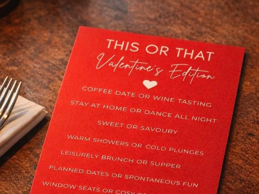 From 12th to 15th February, every table will receive a Valentine’s Day card to write a handwritten love letter, adding a personal moment to the meal. Adding to the experience, couples dining with us will receive our This or That Valentine’s Edition table activity card, available with our compliments throughout the Valentine’s weekend. Designed to spark lighthearted conversation between courses, it’s a simple, playful way to learn each other’s preferences and keep the mood easy, fun, and connected.