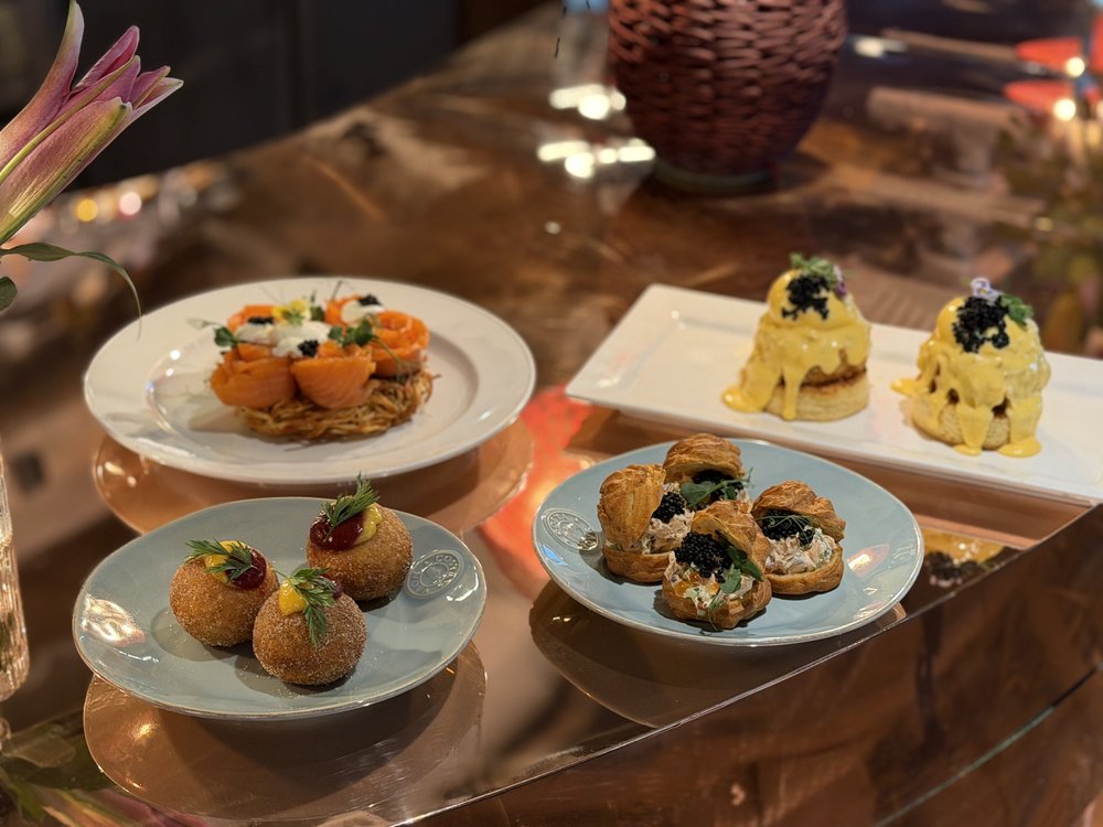 Begin your Easter brunch with a delightful little bite of our Gougères, dressed for the season with hot smoked salmon, delicate pearls of salmon roe, crème fraîche and a touch of caviar. Light, savoury and comforting, they are the perfect way to ease into a long, leisurely meal.